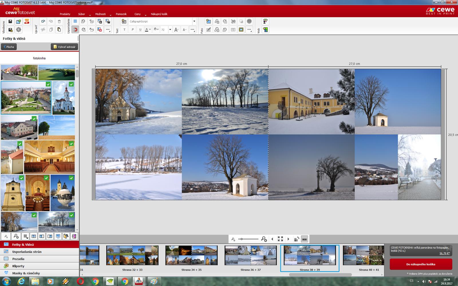 Takto jednoducho pokračujete stranu za stranou (ubehne to ako voda), pričom použité fotografie sa vám v priečinku vždy označia – nestane sa vám tak, že by ste rovnakú fotografiu vložili 2x, ak tak nechcete urobiť. Fotoknihy majú v základnej cene predurčený počet strán, ak však chcete aby ich mali viac, jednoduchým klikom si ich pripojíte a môžete tvoriť ďalej – cena za ne sa vám automaticky priráta do košíka, takže vidíte vždy aktuálne, koľko vás fotokniha bude stáť.