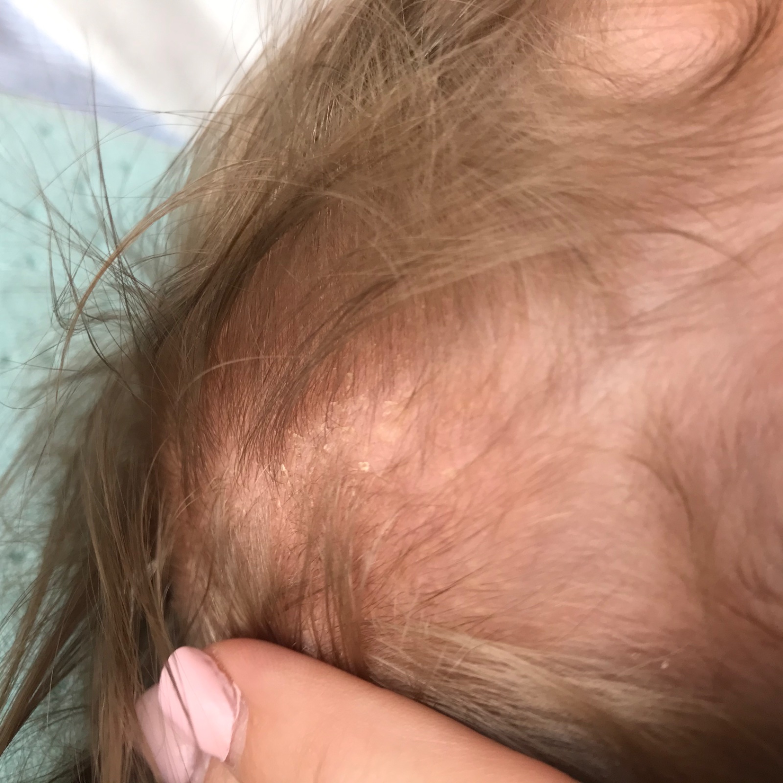 v tomto veku je pre detičky typická mliečna chrasta. Vyskúšajte vymeniť šampón a vlásky umývajte Babe detským šampónom na mliečnu chrastu, prípadne Linola šampónom.