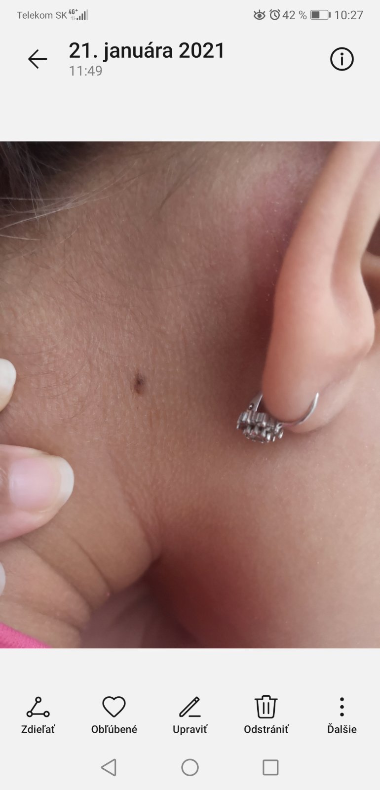 dcérka má takéto znamienko. Nebolí ju a ani ju nesvrbí. Zdá sa, že je stále rovnakej veľkosti a možno trochu mení farbu.