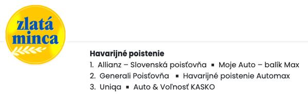 tak ako aj vyhodnotila porota privolaná nestrannou organizáciou Zlatá Minca pri vyhodnotení najlepšieho havarijného poistenia na trhu, najlepšie skúsenosti máme aj my s poisťovňou Allianz a Generali.