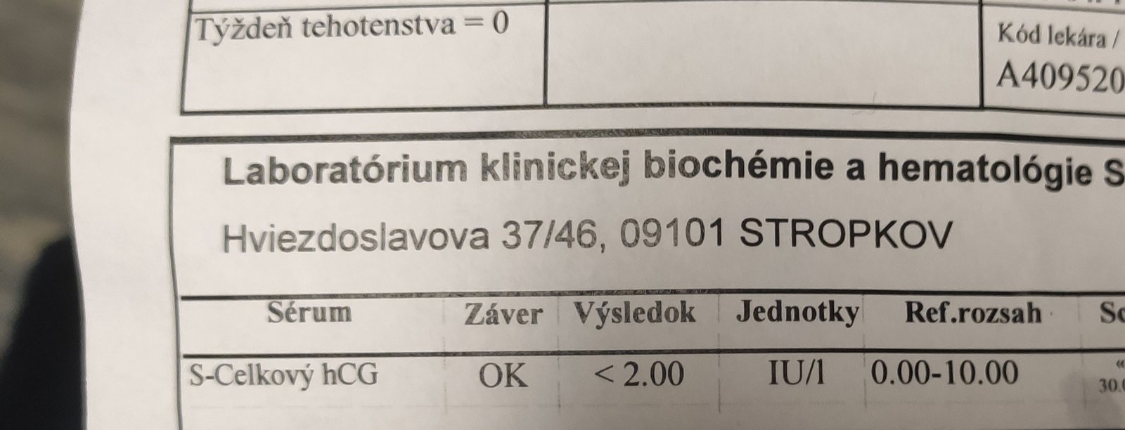 nie ste tehotná. Referenčné rozmedzie laboratória je 0-10. Čo by bol stále negatívny výsledok.