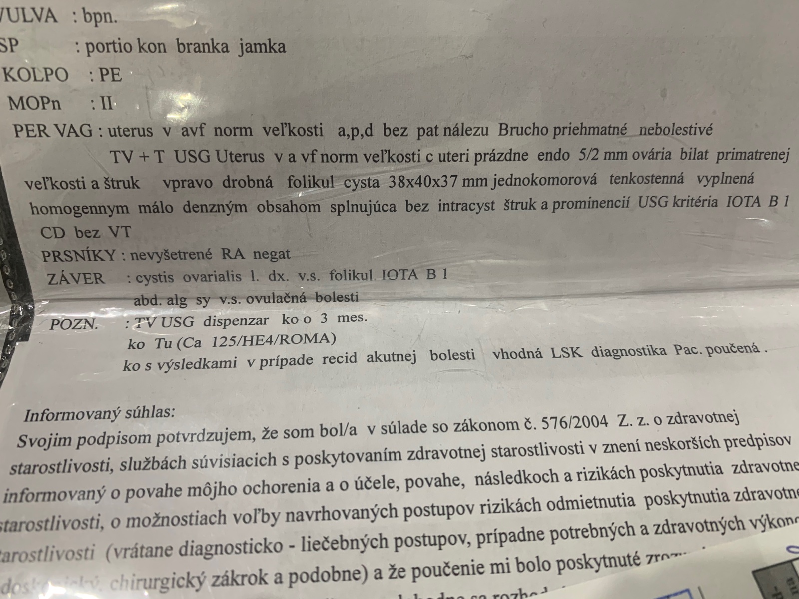 Pri danom náleze je veľká pravdepodobnosť, že cysta praskne alebo sa vstrebe a na kontrolnom ultrazvuku po 3 mesiacoch už nič vidieť nebude.