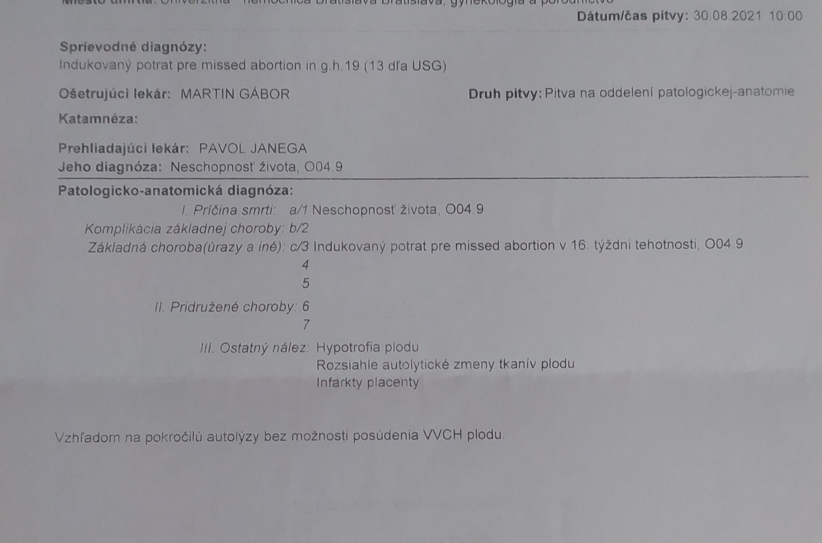 včera som obdržala výsledky z pitvy zo zamlčaného potratu v 19. týždni