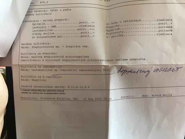 na predošlej poradni v 21 tt mi boli brané stery ktoré vyšli takto (foto v prílohe). Pred výsledkami mi lekár predpísal tabletky na vkladanie do pošvy ktoré som doužívala. Pri terajšej kontrole mi sestrička povedala, že si mám kúpiť Vagilact, ktorý som si aj zakúpila.