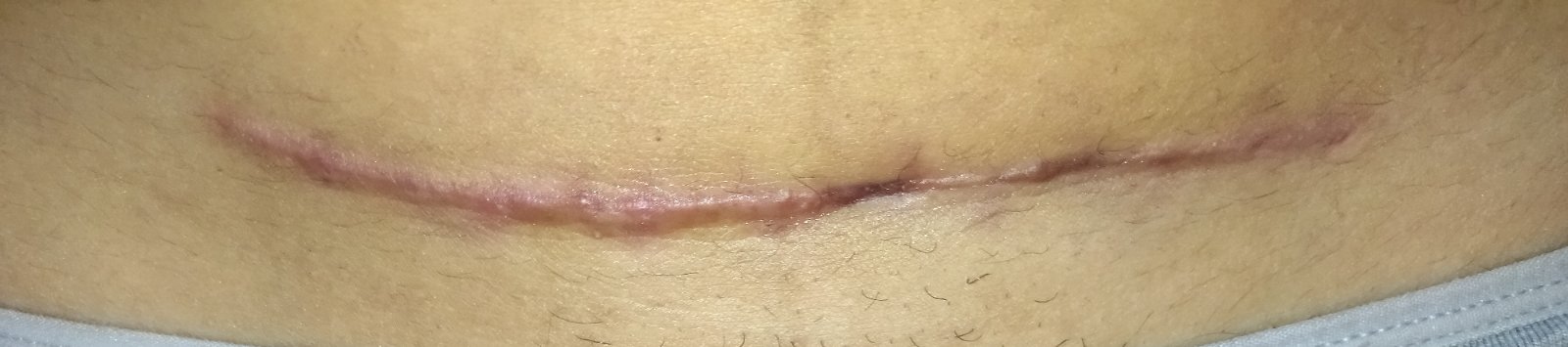 som dva mesiace po sekcii. Na začiatku sa mi v strede roztrhol steh bol tam hnis mokvalo to, potierala som Betadinom a dávala repík.