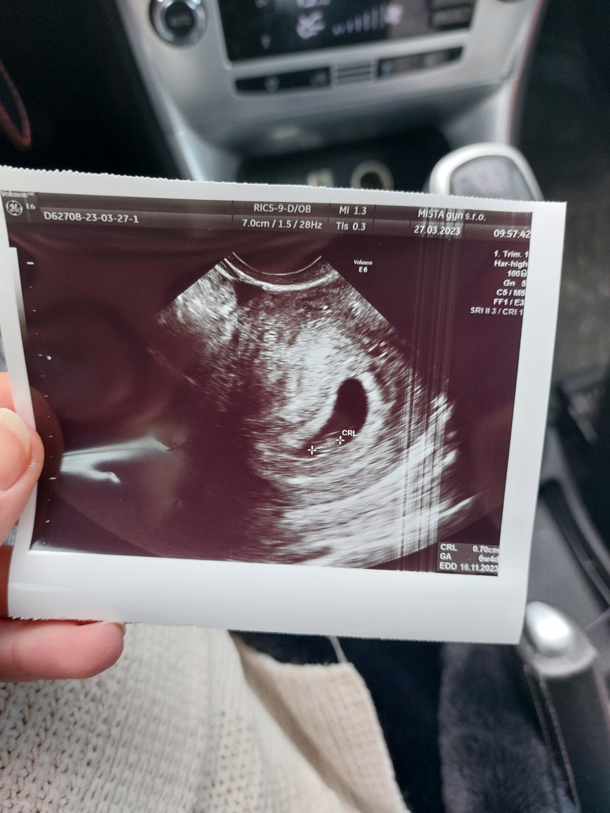 Mala by som byť v 8. týždni (7t + 3d) podľa výpočtu poslednej menštuácie, ktorá bola 3.2.2023. Na snímke od doktorky je však 6. týždeň plus 4 dni.