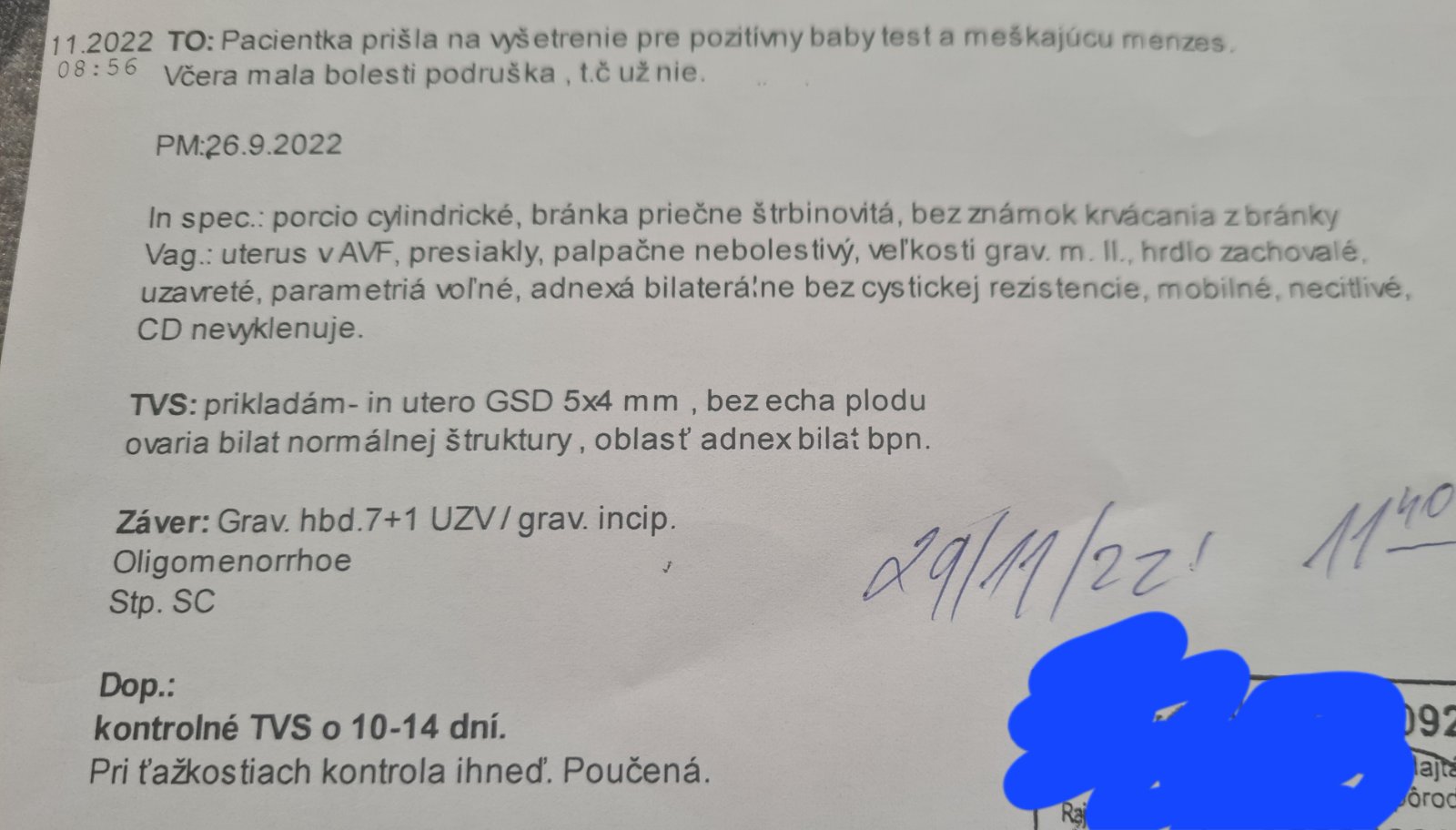 dnes som mala prvú kontrolu a mala by som byť 7+1 no dr videla len prázdny vačok s veľkosťou 4×5 mm.