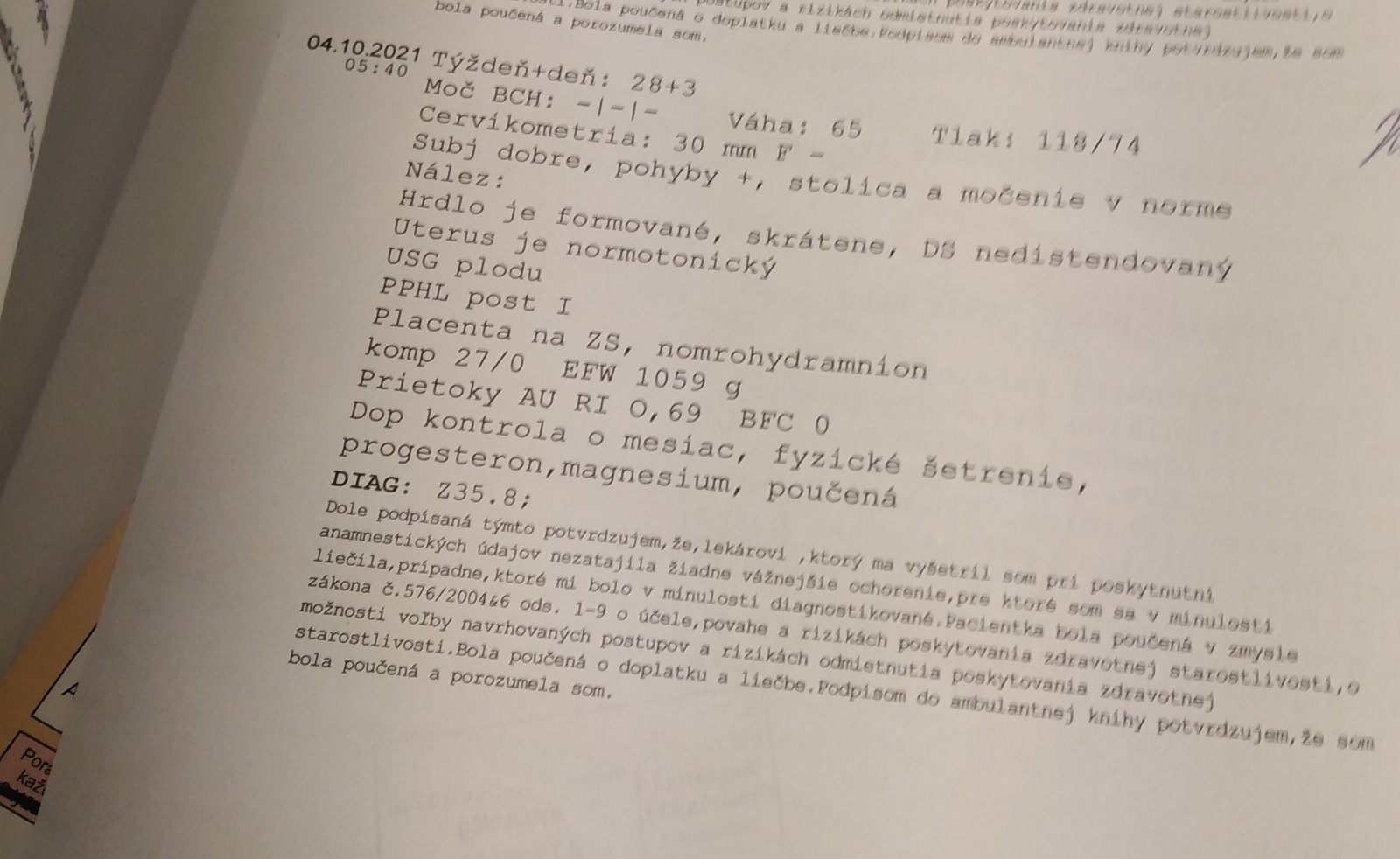 cervikometria - dĺžka krčka maternice je skrátená, zatiaľ však nie kriticky. Dobrou správou je, že sa zvnútra neotvárate a bábätko sa samé dole netlačí.
