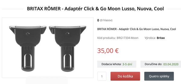 asi ťa nepoteším, ale Britax Römer Click & Go adaptér na model Moon Style nie je v ponuke. Existuje len k modelom Moon Nuova, Lusso a Cool.