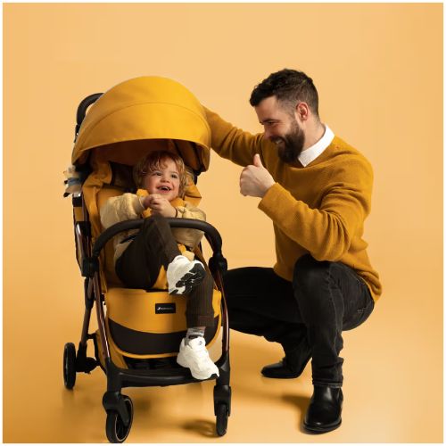Cybex Beezy je menším a kompaktnejším bratom Cybex Eezy S+². Ide o cestovný typ kočíka, ktorý je možné zložiť do veľkosti príručnej batožiny. Vďaka tomu je vhodný najmä na cestovanie a časté presuny autom, kedy oceníte jednoručné zloženie s funkciou samostatného státia, ale využitie nájde aj ako kočík do mesta. Nízka váha a výborná manipulovateľnosť mu umožňujú ovládanie jednou rukou. Športové sedenie je možné napolohovať do úplne rovného ľahu.