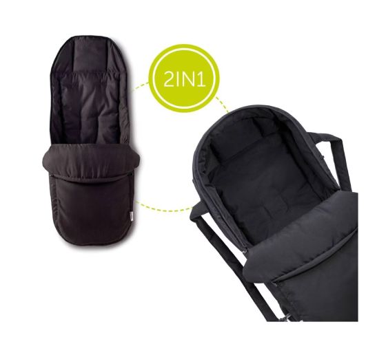 Do kočíkov Ti postačí aj jednoduchšia vložná taška 2v1 od značky Hauck, ktorú neskôr využiješ ako fusak či samotnú podložku športového sedadla.