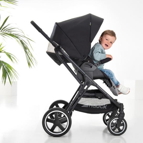 Hauck Saturn R má rukoväť teleskopickú, takže ho môžeš viac prispôsobiť svojej výške. Maximálne ide nastaviť do rovnakej výšky.