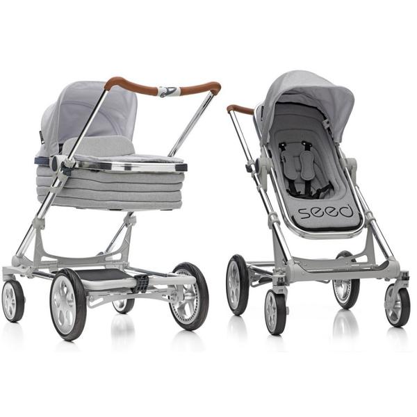 Z drahších modelom odporúčam kočík Seed Papilio. Je to high-endový kočík originálneho, minimalistického dizajnu. Jeho konštrukcia v tvare L je vyrobená z odolnej zmesy horčíka a hliníka. Napriek robustnosti je veľmi dobre skladná - až na placku. Kočík tak zmestíš aj do kufra malého auta. Vďaka svojmu tvaru konštrukcia prirodzene pruží a absorbuje otrasy aj pri prechádzkach nerovným terénom. Štyri širšie kolesá sú umiestnené za sebou. Zaručujú perfektnú stabilitu a pritom jednoduché, jednoručné ovládanie kočíka. V spodnej časti má kočík odkladací priestor - plošinu, ktorá sa dá doplniť veľkou dokúpiteľnou taškou prístupnou zhora, ale aj z bokov rozzipsovaním. Spolu s vyššou nosnosťou pre dieťa Papilio dokáže odviezť až 23 kg. So svojou teleskopicky nastaviteľnou rodičovskou rukoväťou vo výške od 99 do 102 cm a nízko položeními nadstavbami sa dokonale hodí pre nižších rodičov.