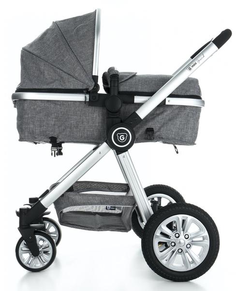 G-mini Grand je fajn začiatočné riešenie kočíka od narodenia, ale kvôli menším predným kolesám jednoznačne mestské. Určite to nie je kočík do terénu.