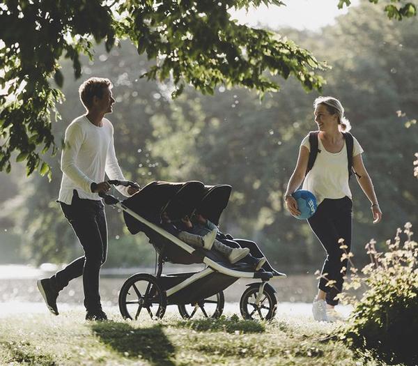 Thuľa Urban Glide 2 Double je o 1 kg ľahší kočík (15 kg) a o niečo lepšie sa s ním manipuluje vďaka veľkým nafukovacím kolesám. Volila by som ho v prípade, ak by prechádzky v prírode prevládali nad mestom alebo pokiaľ športuješ. Nevýhodou je nemožnosť polohovania nôh, ktoré je nutné dokúpiť zvlášť. Hlbokú vaničku má o trochu priestrannejšiu. Môžeš oceniť aj ručnú brzdu či uzatvárateľný nákupný košík.