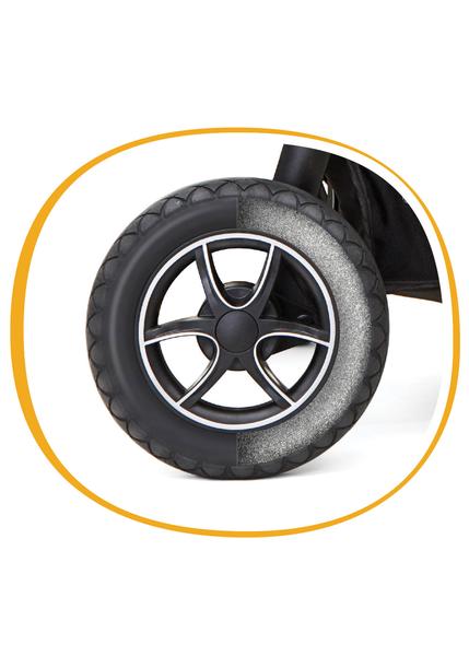S klasickými EVA penovými kolesami tento typ nič nemá. Pena vnútri je iná plus jazdí na pneumatikách, ktoré sú gumové.