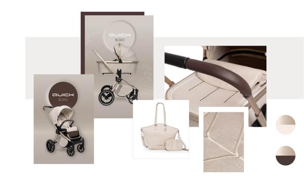 nový model Muuvo Quick Boho vyšiel z pôvodného bratského modelu Muuvo Quick 4.0. Boho je určený pre rodičov, ktorí sa pohybujú buď po nerovnejšom mestskom povrchu, alebo sa pohybujú po dedine. Nižšia váha a ľahká manipulácia umožňujú ovládanie jednou rukou. Zaujme jednoduchým zložením spolu s nasadeným sedadlom na konštrukcii v akomkoľvek smere. Nie je potrebné ani hľadať miesto, kam kočík opriete. V zloženom stave bude totiž stáť presne tam, kde ho postavíte. Priestranné perforované a výškovo nastaviteľné športové sedenie patrí na trhu k tým priestorovo veľkorysejším, je nekorýtkového typu a je možné ho napolohovať do skoro úplne rovného ľahu.