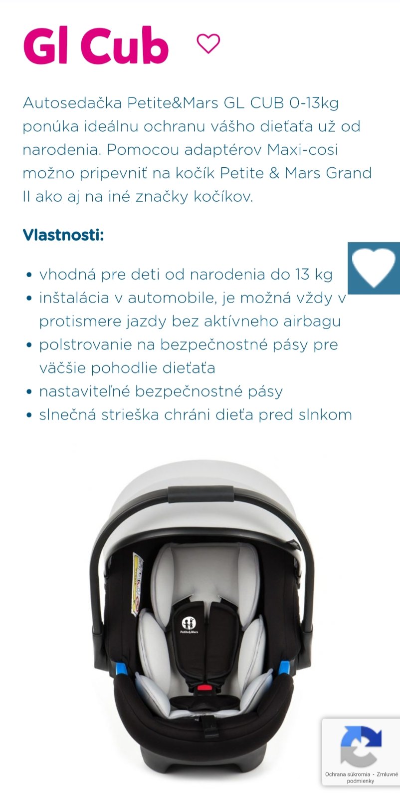 Najpoužívanejšie sú Bebetto adaptéry typu Maxi-Cosi (viď. obrázok č.2), ktoré umožňujú nasadenie autosedačiek viacerých značiek. Napr. Maxi-Cosi, Cybex, BeSafe, Kiddy, Recaro na konštrukciu viacerých kočíkov značky Bebetto. Mali by Ti umožniť aj spojenie s autosedačkou Petite&Mars GL Cub. Teda na 99%.
