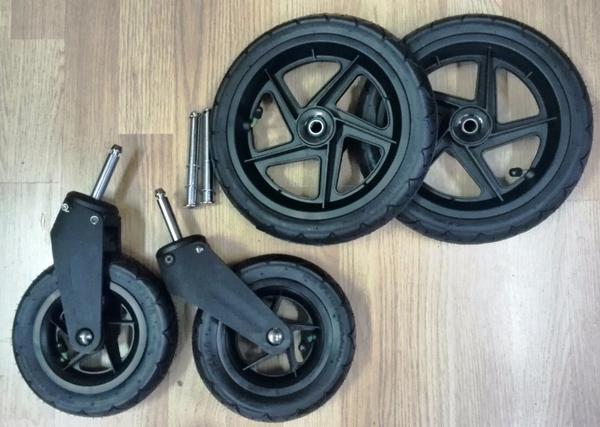 na pripojenie nafukovacích kolies na B-Agile Plus potrebuješ použiť osky z tých pôvodných kolies. Nejde to úplne ľahko - treba ich silou vyňať a dať do nových kolies, ale výrobca na B-Agile (Plus) ani nezamýšľal dávať kolesá nafukovacie, takže to určite neuľahčil. A môže byť, že pre nafukovačky nebude dobre fungovať brzda ani potom, teda ani s tými oskami, aj ke’d by mala.