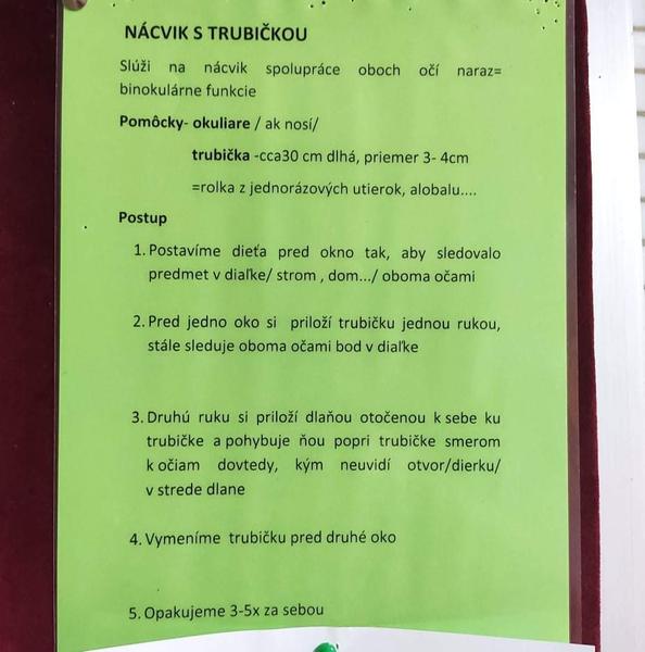 Čo sa týka nácviku binokulárnych funkcií je o tom, aby dieťatko pozeralo súbežne oboma očkami naraz ale aby si spájalo obraz do jedného v mozgu.
