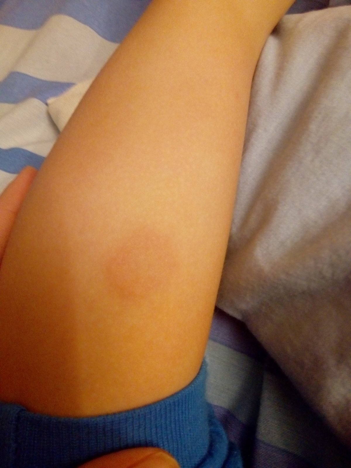 synovi sa na lýtku vyhodila kruhová jemne ružová škvrna, ktorá je aj mierne tvrdšia v priemere asi 2 cm. V strede je pokožka normálna. Má to už tretí deň a nemizne. Podobný fliačik má dnes už aj na druhom členku.