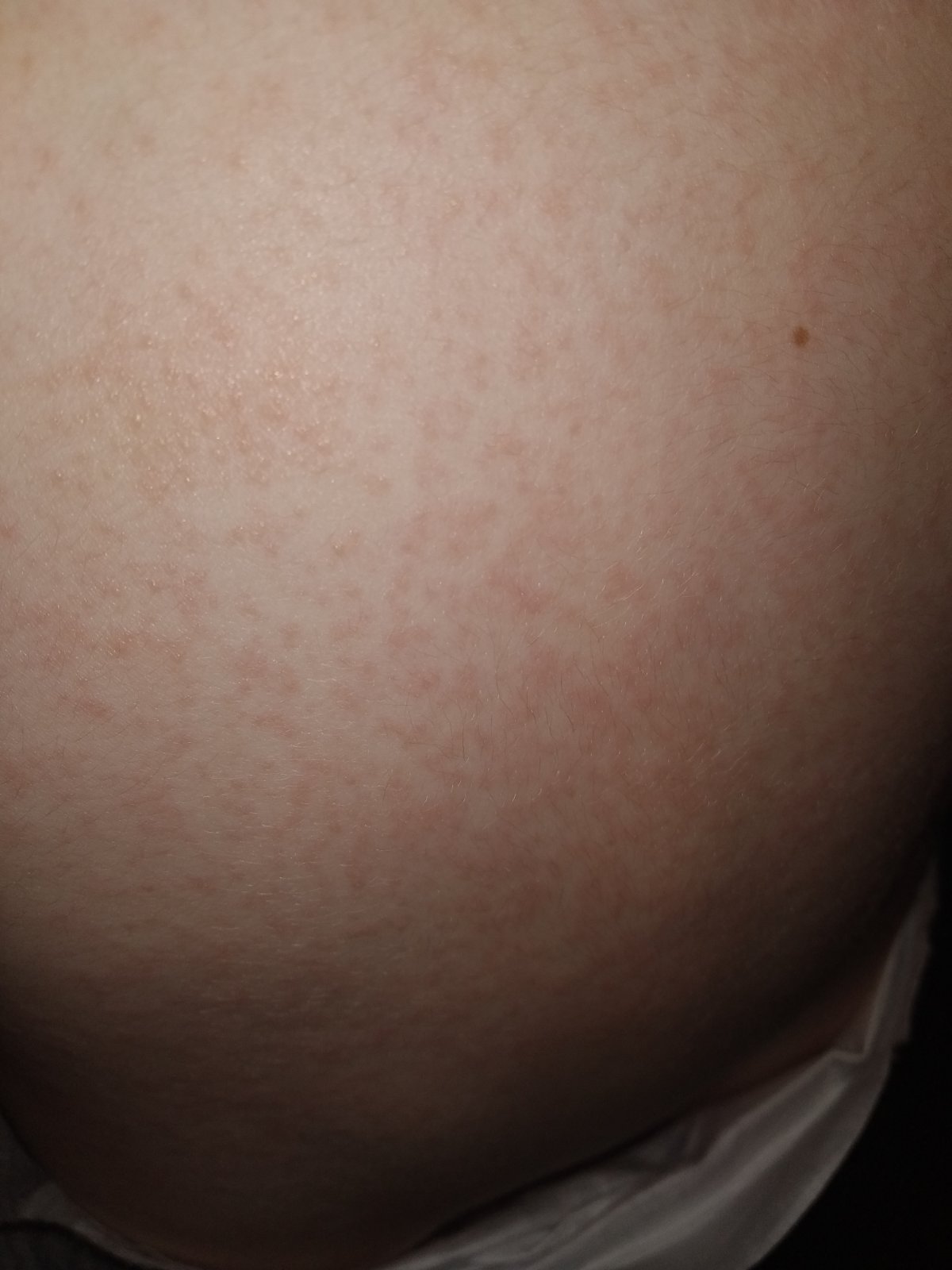 chcem sa poradiť ohľadom dvojročného synčeka. Pred 2 dňami sa zobudil a zvracal. Následne sa celý deň sťažoval, že ho bolí bruško. Večer už dostal teplotu 38,7°C a celý sa vysypal. Vyrážky má na chrbátiku a na brušku.
