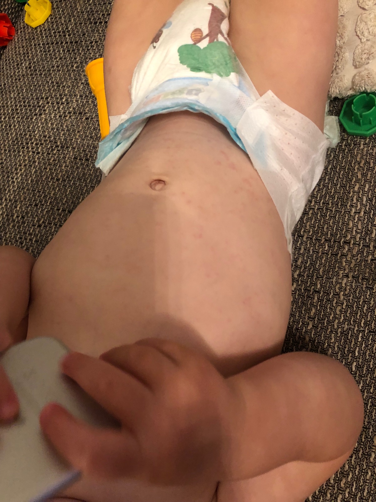 V stredu večer dieťaťu stúpla teplota na 40,4°C a ráno vo štvrtok už nemal teplotu vôbec. V piatok večer som spozorovala prvé náznaky výsypu na trupe a dnes v sobotu sa mi dieťa vysypalo po celom trupe a na tvári.