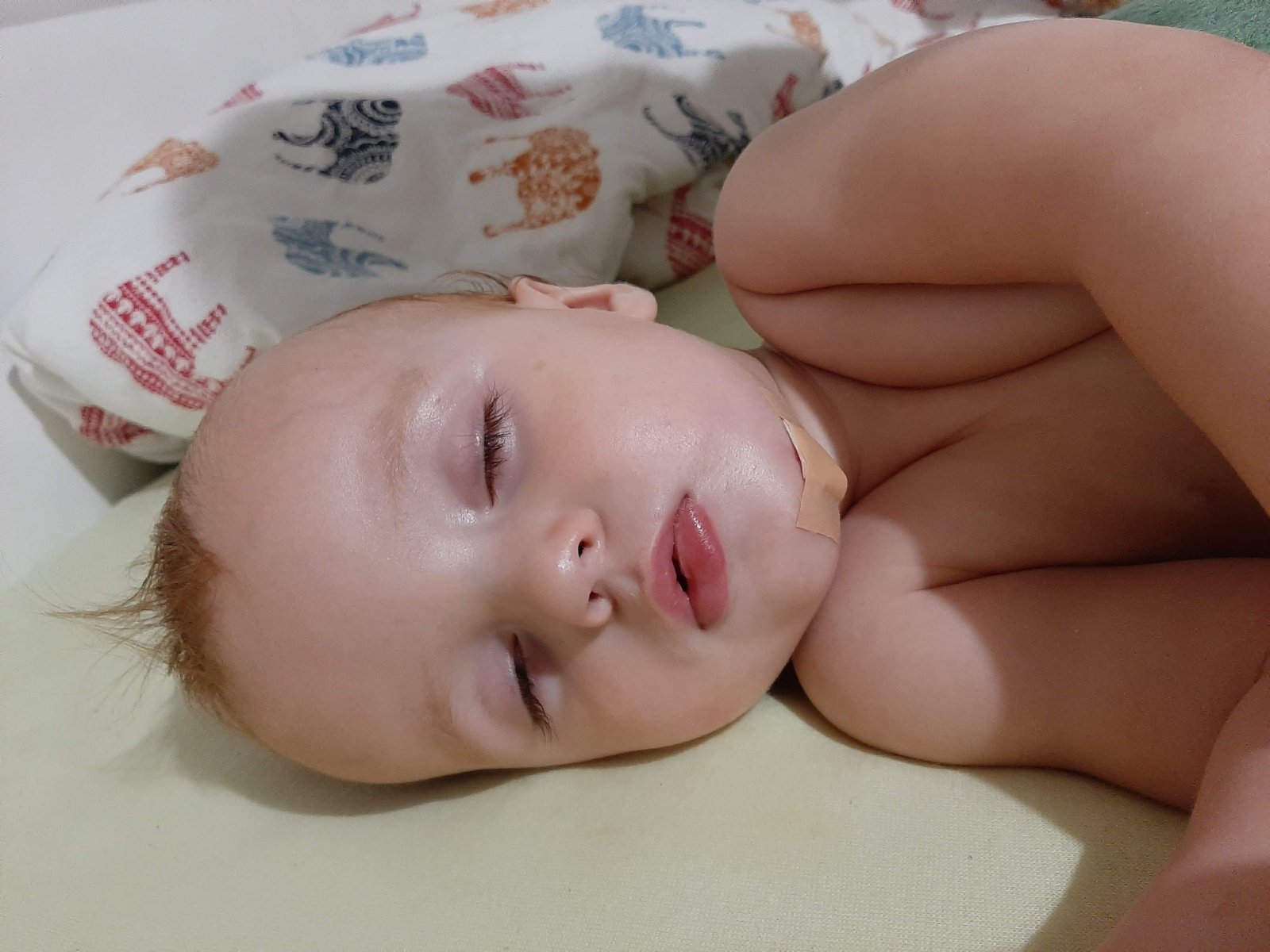 Po šití bolo všetko v poriadku. Doma sa normálne najedol a išiel spinkať. Keď som ho okolo 22tej išla skontrolovať, tak mal takto opuchnutú tváričku a pusinku. Miesto zašívania opuchnuté nemal. Len pusinku a líčko. Pred spaním si chytal jazyk, asi ho svrbel.