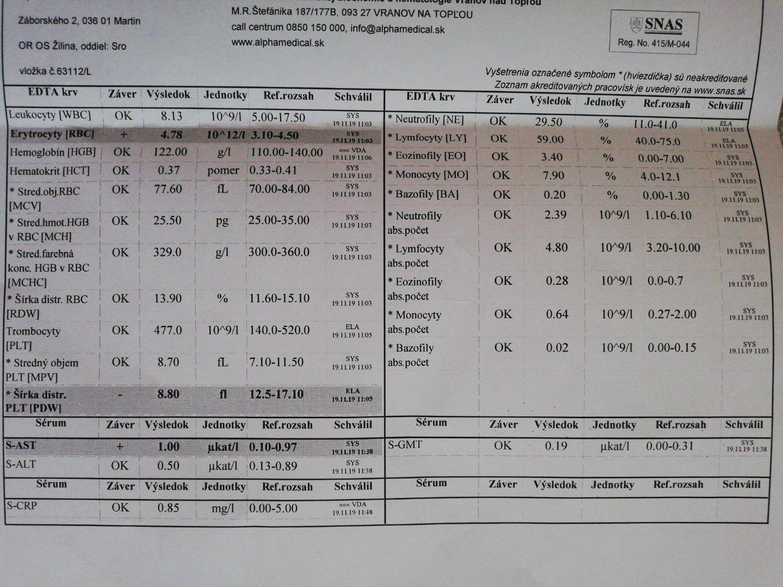 Má izolovane zvýšený jeden pečeňový enzým (AST) - čo dojčatá mávajú. Mávajú ho zvýšený aj deti po prekonanej infekcie atď. To sa odsleduje s nejakým odstupom (1- 3 mesiace).