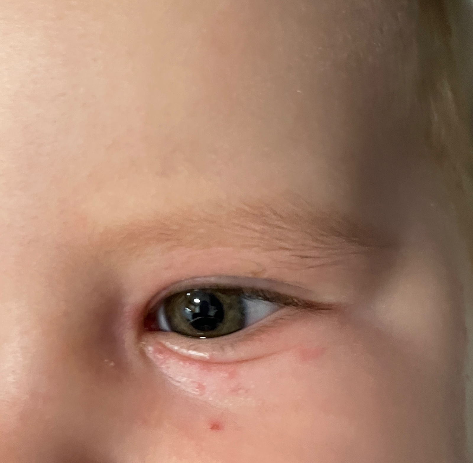 Posledných pár dní má okolo očka také červené pupáčiky a stále mu to neprechádza.