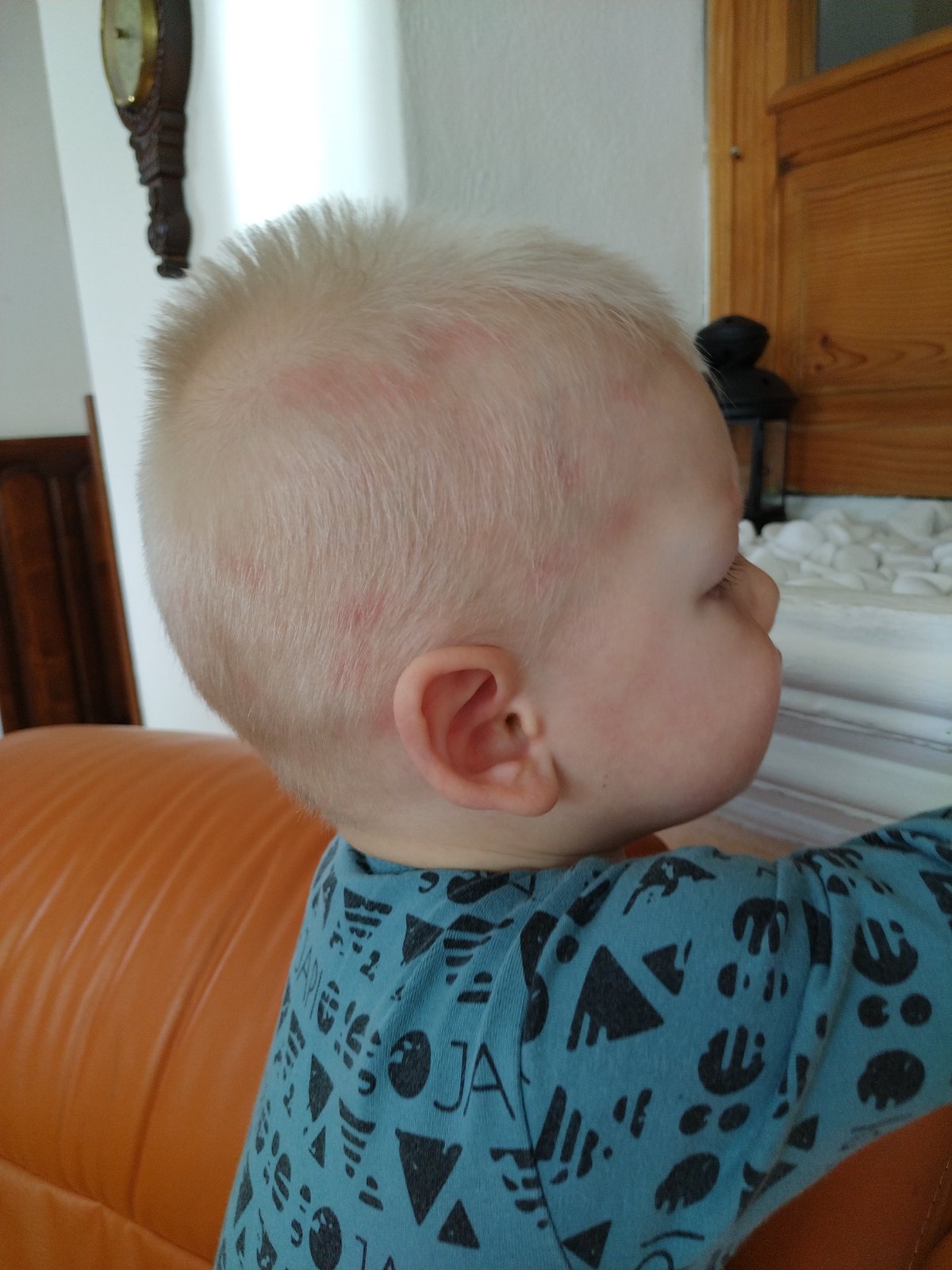 syn má rok a 3 mesiace a na hlavičke sa mu vytvorili takéto červené fľaky. Nie sú vypuklé a ani drsné. Sú skôr hladké a objavia sa z ničoho nič. Tak isto aj zmiznú. Väčšinou sú to len 2 - 3 fliačky, ale mal ich aj viac.
