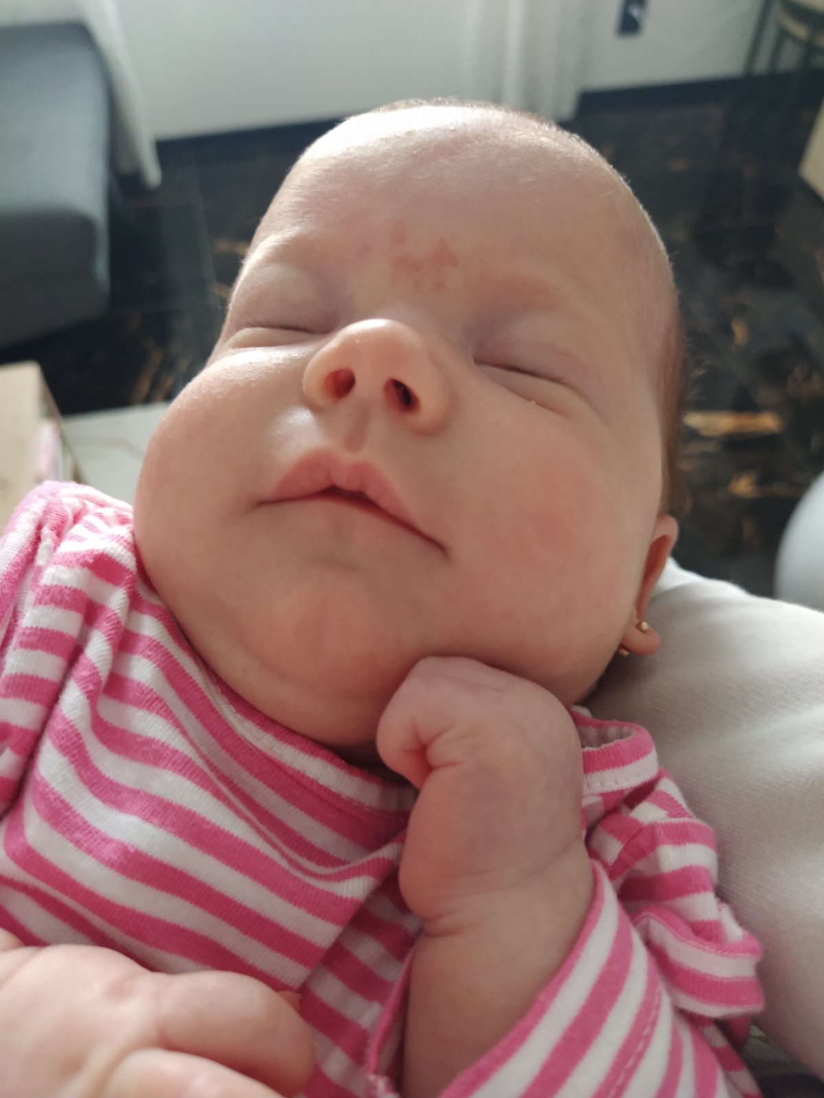 dcérka je predčasne narodená a na koreni nosa má červený fľak.