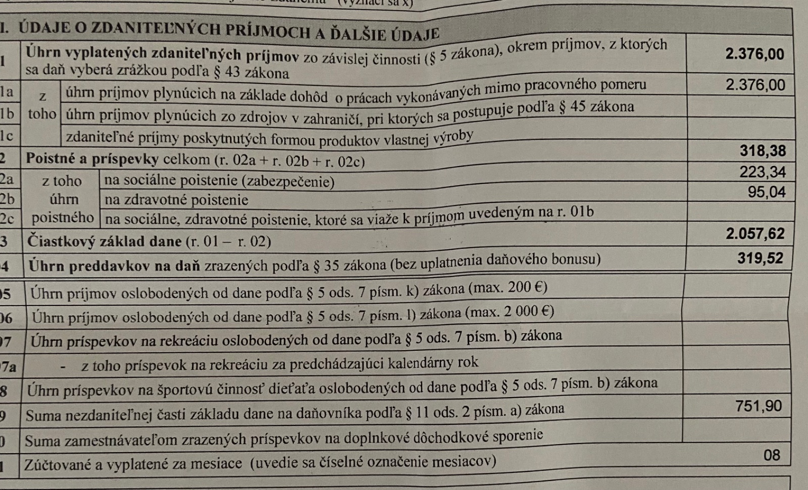 som na RD, avšak minulý rok som mesiac pracovala na dohodu. Celkový príjem za trvanie dohody o vykonaní práce je podľa potvrdenia od zamestnávateľa nasledovný - viď potvrdenie: