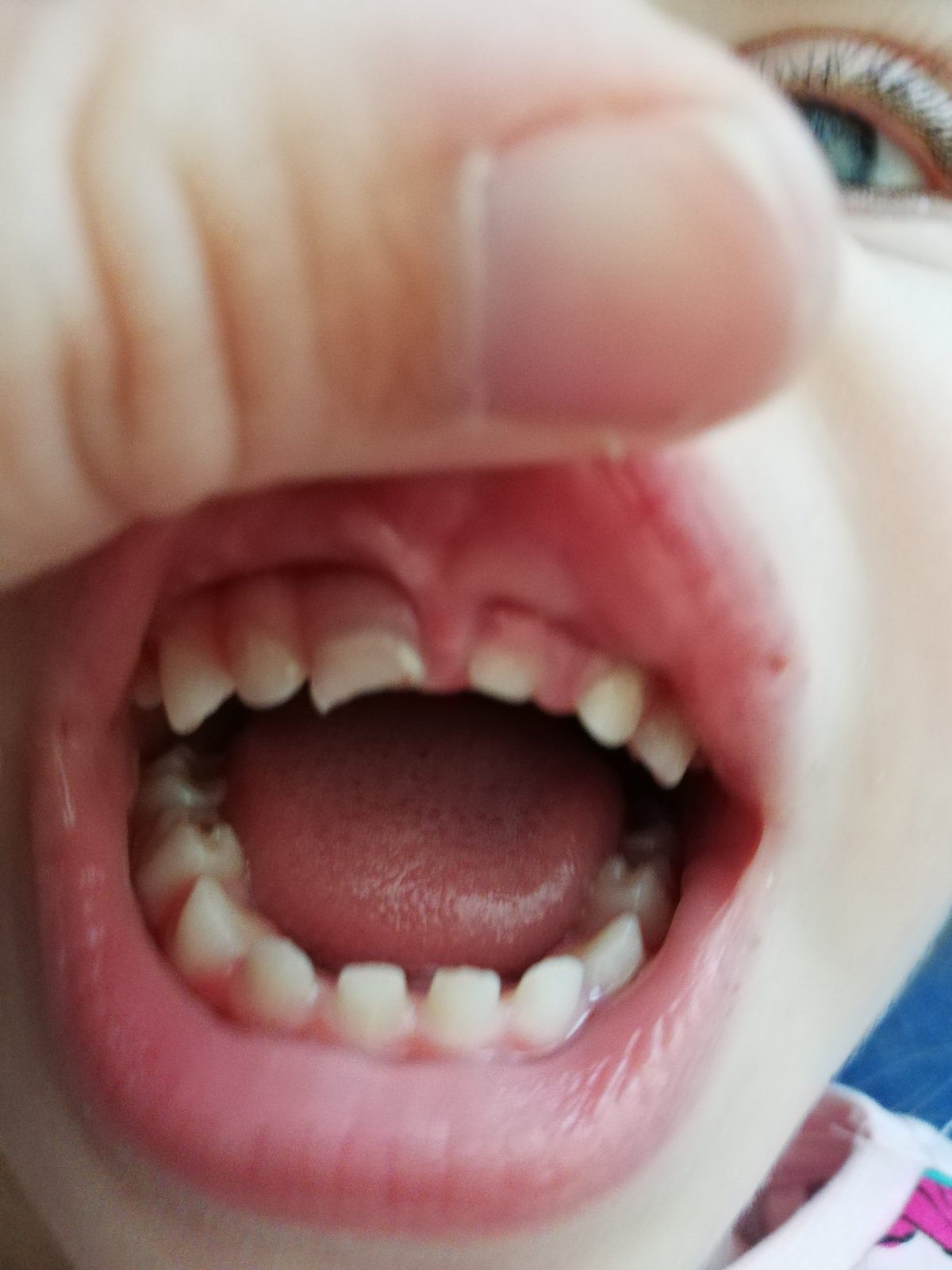 asi pred týždňom dcérka spadla na ihrisku, prekúsla si hornú peru a dve zúbky narazila. Jeden zub bol nalomený a po pár dňoch sa z neho odlomilo. Druhý zub sa vtisol späť do ďasna.