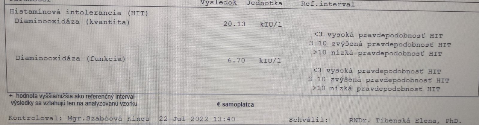 vo výsledkoch máte zníženú funkciu enzýmu DAO, ktorý štiepi histamín. Jeho množstvo je však v poriadku.