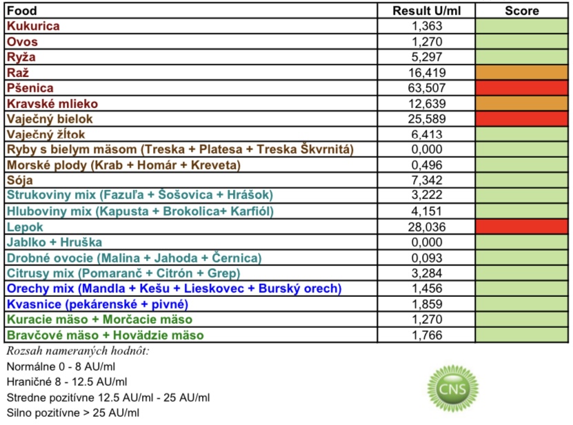 Predpokladám, že sa jedná o intolerancie. Z výsledkov vidím intoleranciu na mlieko, vajcia a lepok - vrátane pšenice.