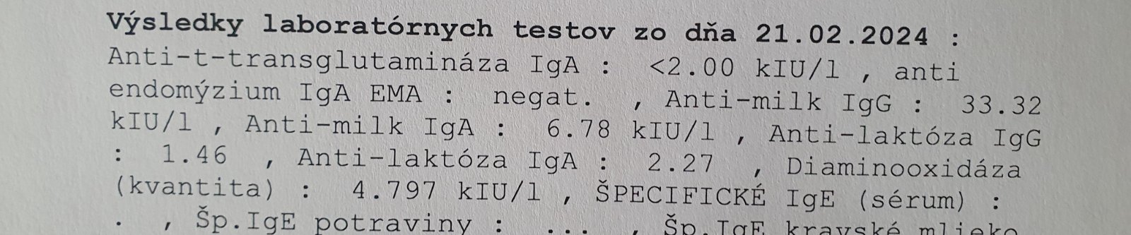 chcela by som Vás poprosiť o interpretáciu výsledkov odberu krvi mojej 8-ročnej dcérky. Odber jej robila naša pani pediatrička v rámci iného akútneho vyšetrenia. Nakoľko nie je zároveň aj alergologička, nepovedala nám k tomu veľa informácií, okrem podozrenia na histamínovú intoleranciu. Podľa výsledkov (hodnôt) máme podozrenie aj na laktózovú intoleranciu, prípadne aj kravského mlieka.