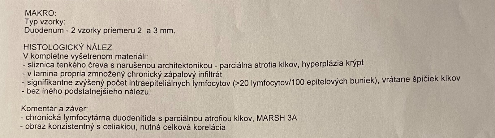 posielam výsledky z biopsie čreva a dvanástnika.