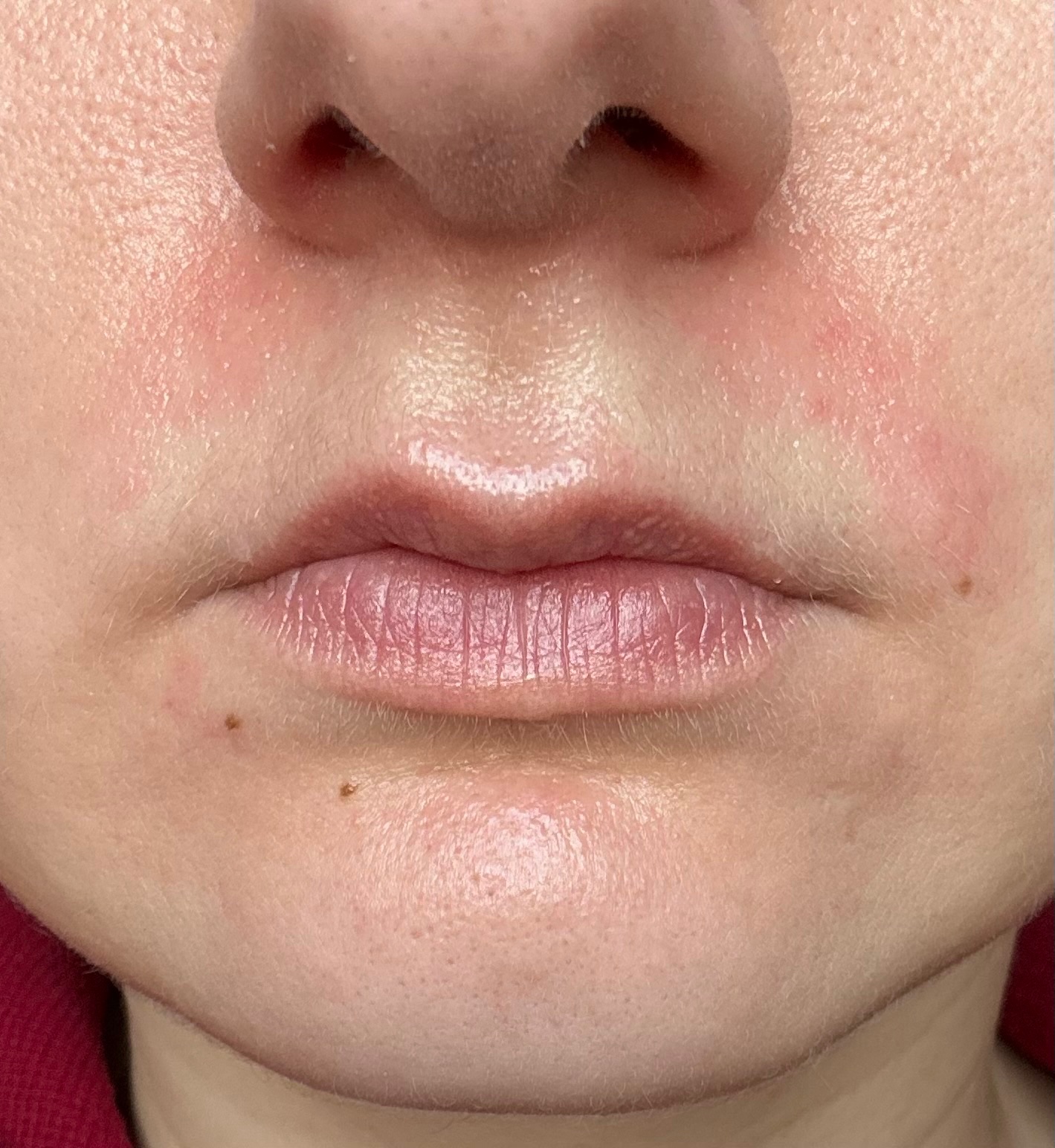 Jediný pretrvávajúci problém sú červené fľaky okolo úst, ktoré lemujú ústa po oboch stranách od nosa po kútiky úst a tiež na brade. Objavili sa už pred tehotenstvom, približne pred 10 rokmi. V poslednom období sú však výraznejšie. Dokonca sa na nich tvoria aj malé pupienky a už ich nedokážem zakryť ani make-upom.