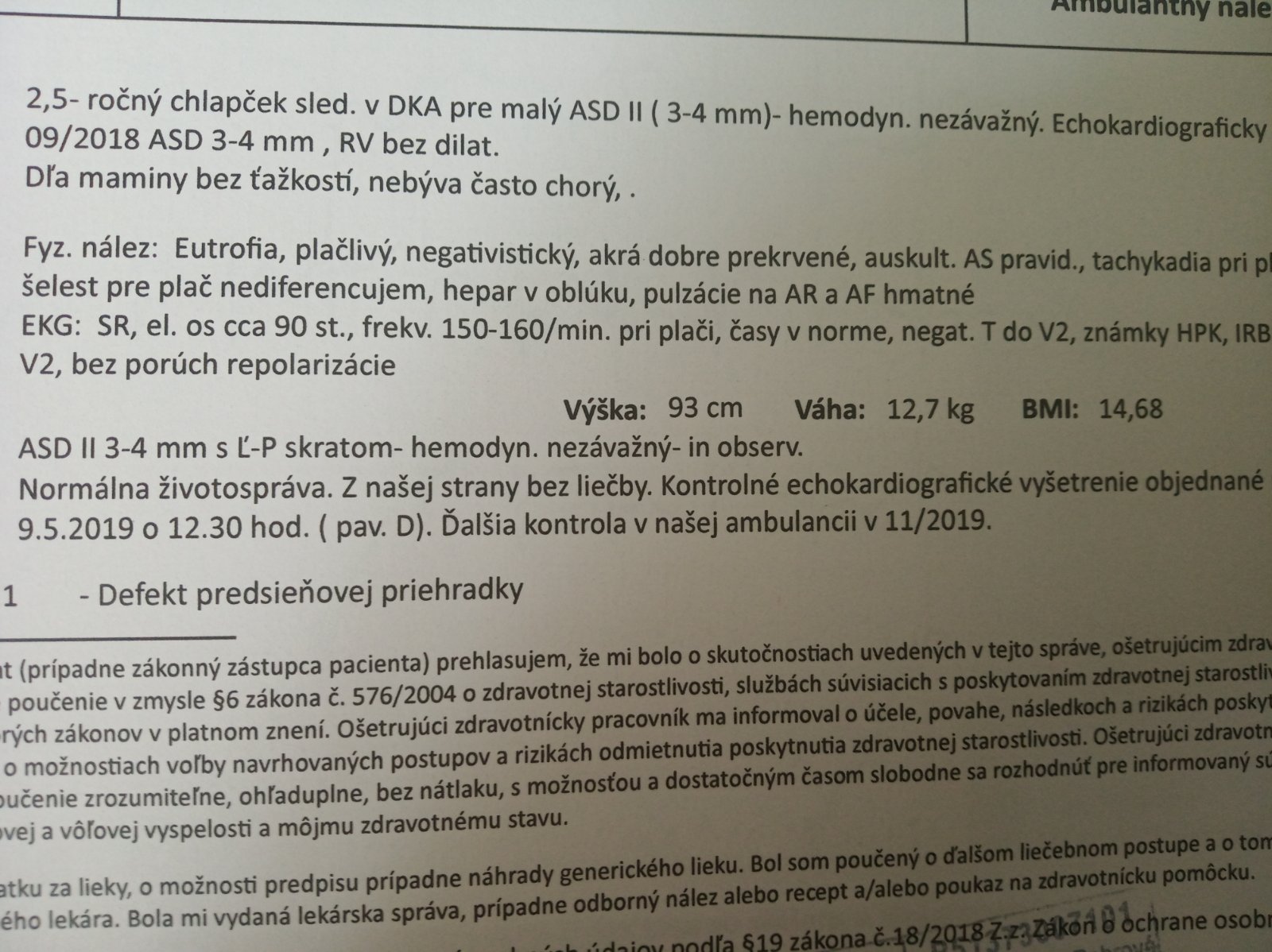 chcela by som sa poradiť ohľadom defektu predsieňovej priehradky nášho dieťaťa.
