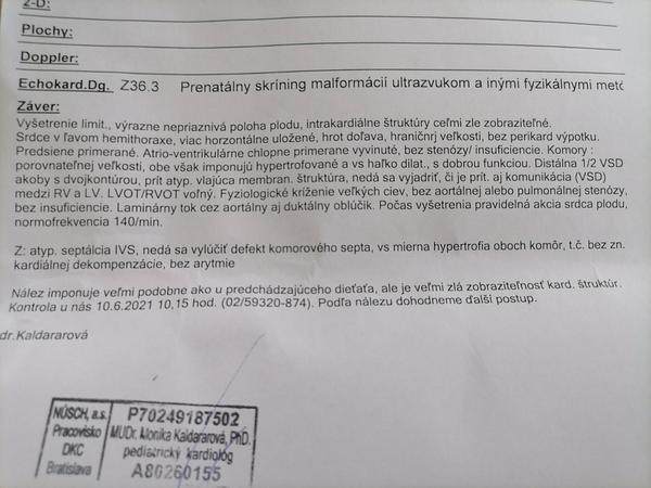 Po dlhom strachu sme sa rozhodli pre súrodenca a čakáme dievčatko. Pravdepodobne má to isté čo syn. Tentokrát mi to gynekologička nenašla, ale poslala nás do BA. Bolo to zlé vidieť, lebo bábo bolo zle natočené.