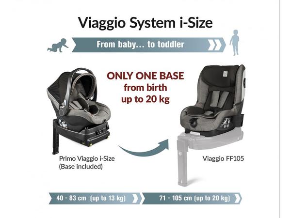 Autosedačka Peg-Pérego Viaggio FF105 je vhodná pre deti od 71 do 105 cm - až do 20 kg (cca 1 - 4 roky). Môže sa používať iba s nohou Peg Pérego Base i-Size.