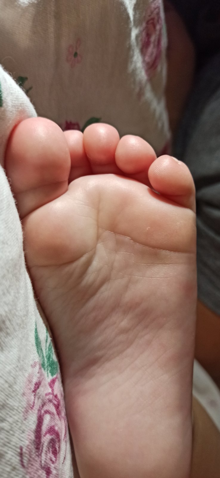 Niekedy chodí aj po špičkách. Písala som našej lekárke a tá povedala, že keď to nerobí nonstop, zatiaľ to riešiť nebude. Prikladám aj foto ako to vyzerá (foto je zo spánku, keď má chodidlo uvoľnené).
