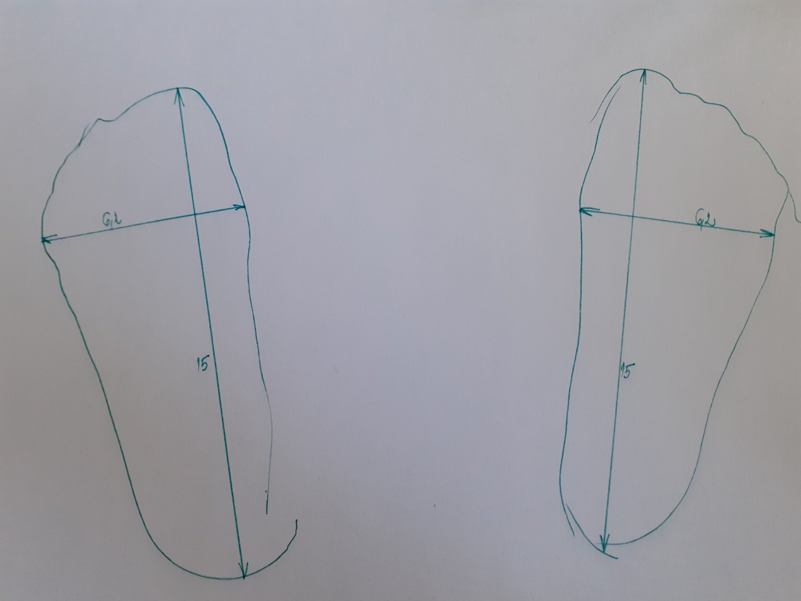 dočítala som sa ako vraj správne určiť, či je nožička normálna, úzka či široká. Má ísť o pomer dĺžky a šírky, pričom koeficient určí o akú nožičku ide. U nás je to 15 : 6,2 = 2,41. Teda by malo ísť o normálnu šírku. Všade sa uvádza prevažne veľkosť nadmerku. Dočítala som sa, že na šírku by to malo byť 2 mm z každej strany, teda v našom prípade by mala byť šírka topánky minimálne 6,4 cm.