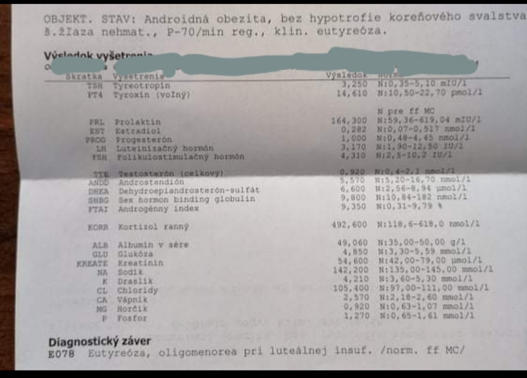 Výsledky mal až neskôr, o PCOS mi hovoril v deň odberu. V správe to neuvádza.