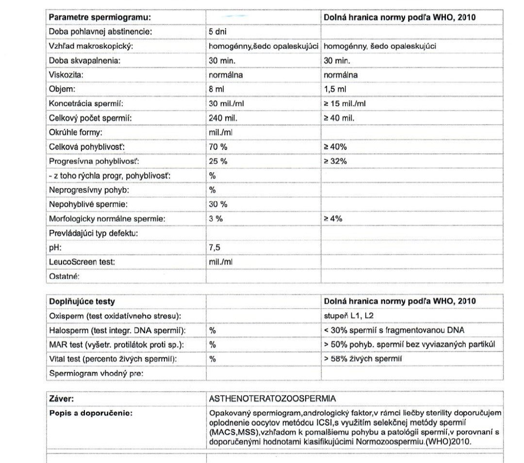 chcela by som sa poradiť ohľadom manželových výsledkov spermiogramu. Doktor povedal jedine to, že spermiogram je zlý.