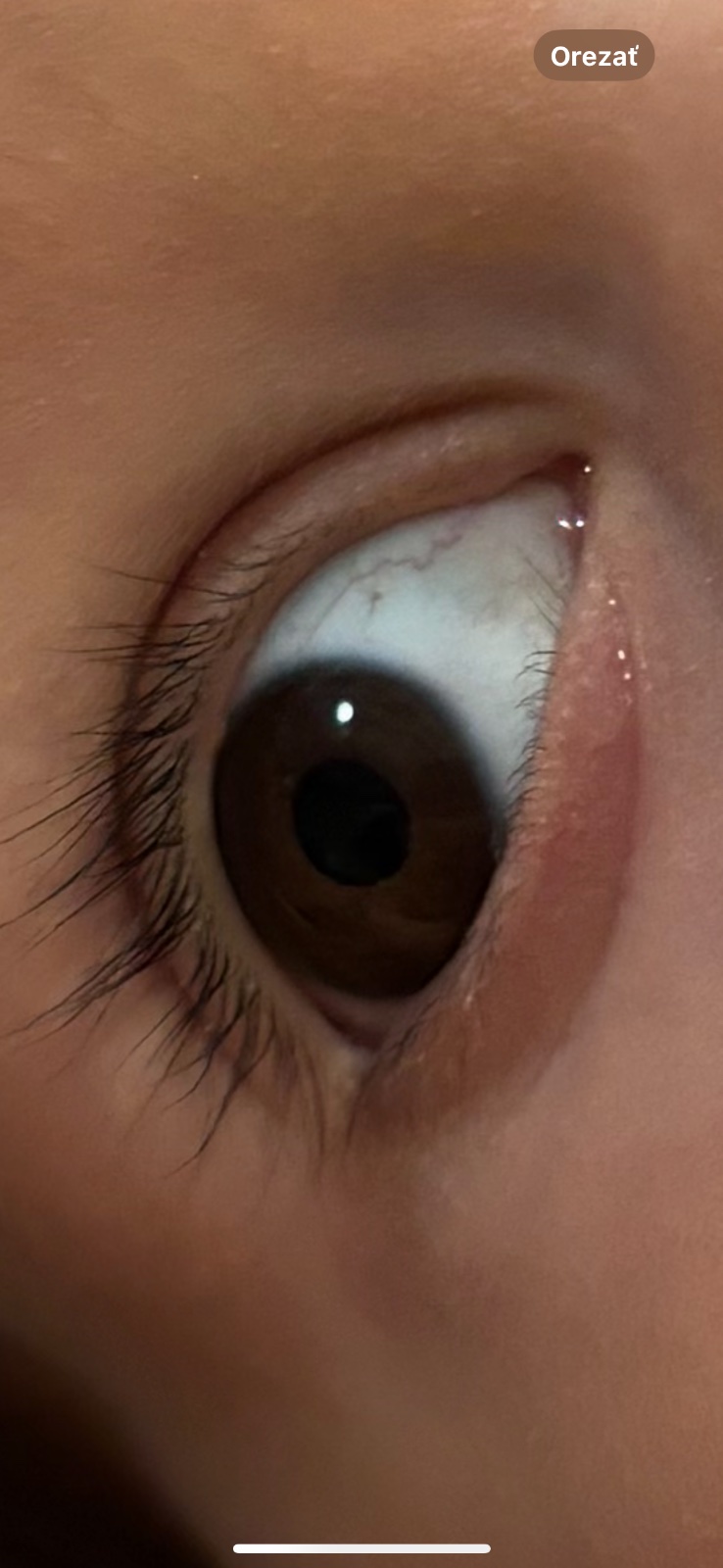 moja dcéra má v pravom oku čiernu bodku v bielku v mieste, kde má žilku. Má ju tam už asi dva mesiace a nič sa s ňou nedeje. Mám z toho dosť obavy. Najprv by som to chcela konzultovať fotkou takto cez poradňu a potom s očným lekárom. Pediatrička tvrdí, že podľa nej to môže byť nejaká zrazenina, ktorá sa nevstrebala, keď silno tlačila alebo plakala.
