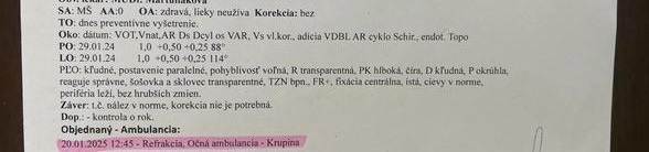 Po podrobnom prečítaní ambulantnej správy som zistila, že dcérke boli namerané 0,5 dioptrie plus diagnostikovaná refrakcia.