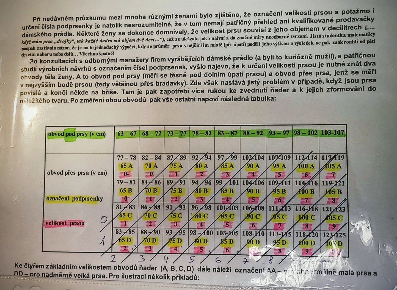 Veľkosť košíkov podprsenky nekoreluje s veľkosťou prsníkov – veľkosť rovnakého košíka C znamená rozdielne veľkosti prsníkov pri obvode pod prsiami 70, 75, 80, 85 cm... Napríklad, ak ste pred operáciou nosili podprsenku 80H, môžete mať po operácii 80F, ale tiež 90C.