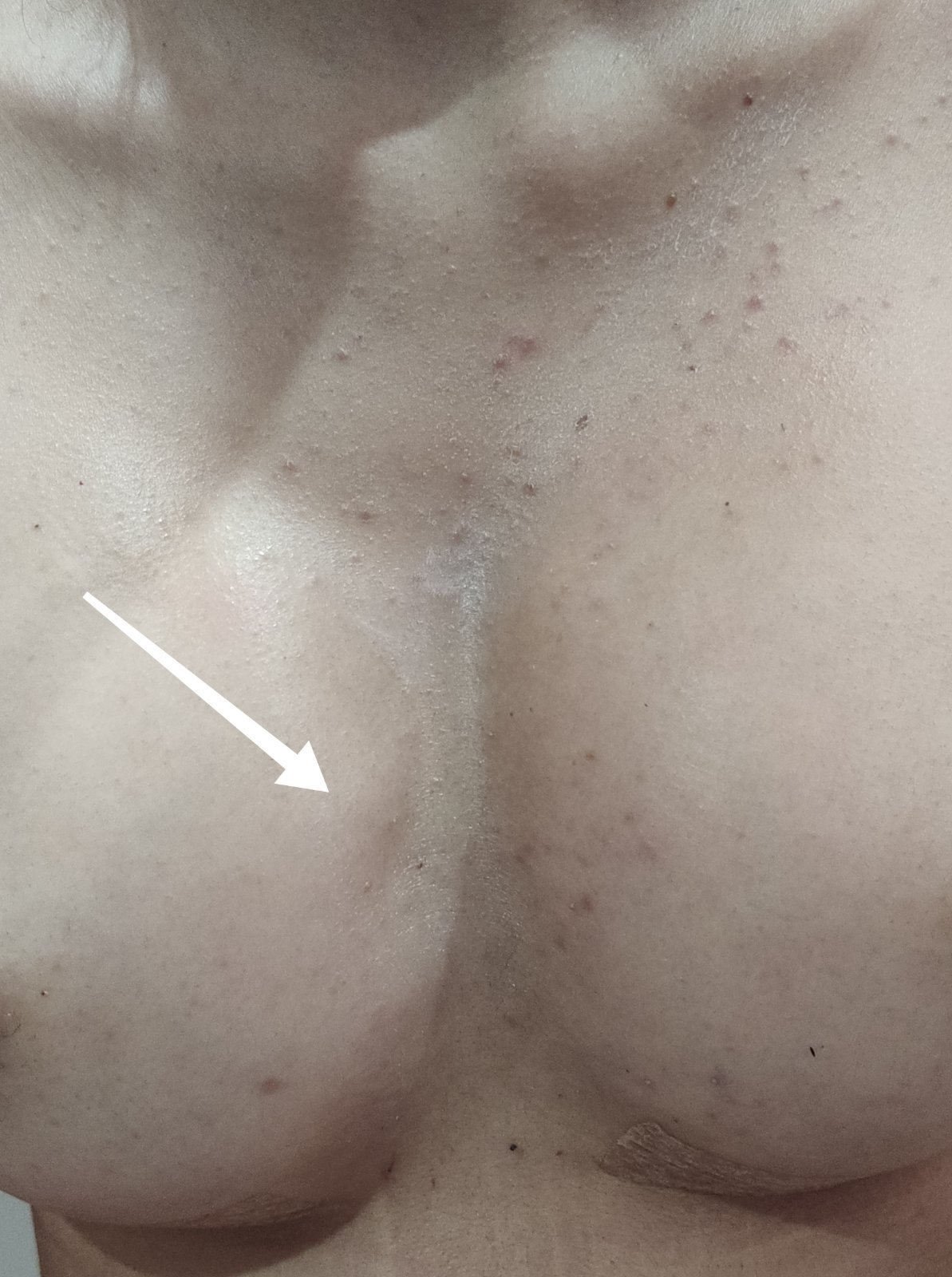 som 13 dní od operácie a na 10. deň som bola na kontrole. Vraj všetko v poriadku. Dnes ráno som si všimla, že na jednom prsníku (tam, kde mám aj vypuklejší hrudník a nerovný) presne pod zipsom pooperačnej podprsenky mám ako keby priehlbinku - nerovnosť, vlnenie. Nie je to veľké a vidno to len pri určitej polohe. Pri dotyku to cítiť.